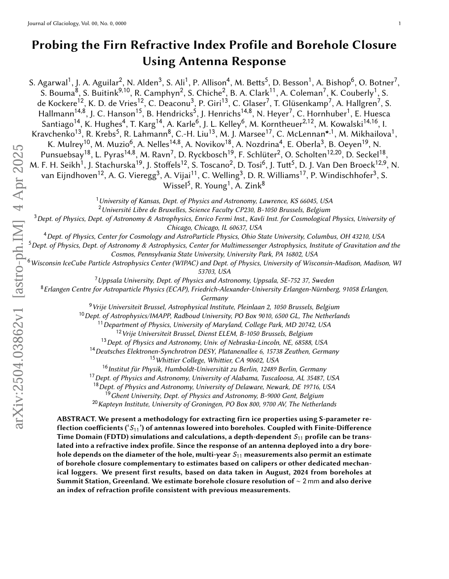 S Agarwal,…., Tutt, James H., et al., “Probing the Firn Refractive Index Profile and Borehole Closure Using Antenna Response”, arXiv preprint arXiv:2504.03862 (2025)