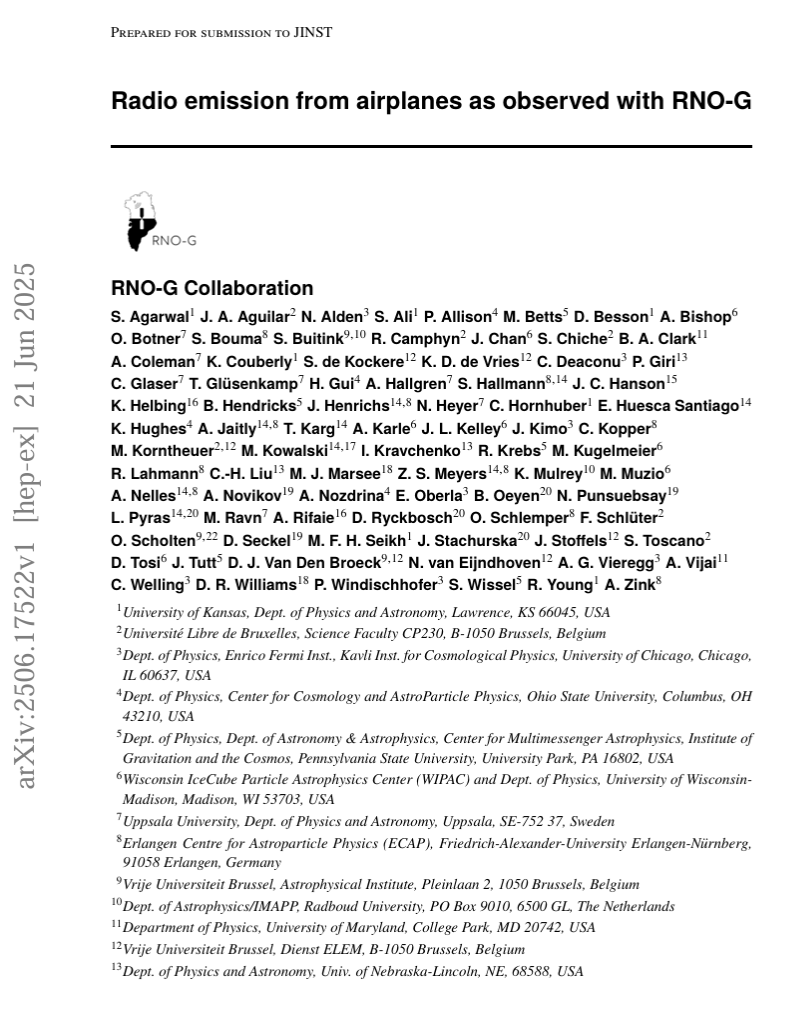 S Agarwal,…., Tutt, James H., et al., “Radio emission from airplanes as observed with RNO-G”, arXiv preprint arXiv:2506.17522 (2025)